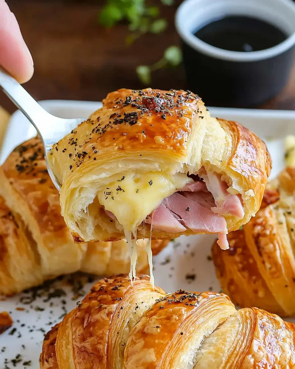 Bake in the preheated oven for 12-15 minutes, or until the croissants are golden brown and the cheese is melted.