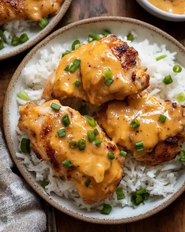- Spoon the Bang Bang sauce generously over each thigh, letting it warm slightly in the pan for 1-2 minutes.