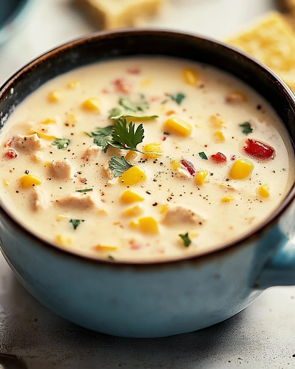 Stir in the shredded chicken and corn kernels. Let the mixture simmer for an additional 5 minutes.