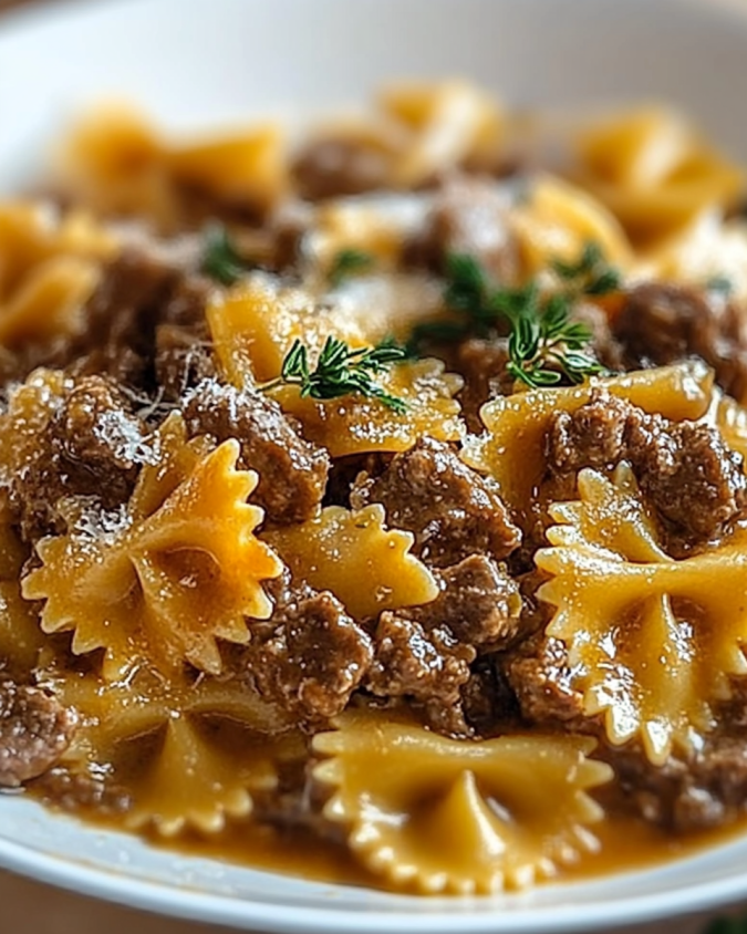 Combine Everything:Add the drained pasta to the beef mixture, pour in the garlic butter, and toss well to coat. Stir in mozzarella and Parmesan cheese until melted and creamy.