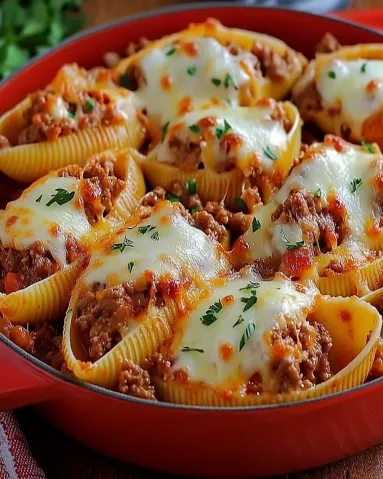 Stuff the Shells:Fill each cooked pasta shell generously with the beef and cheese mixture.