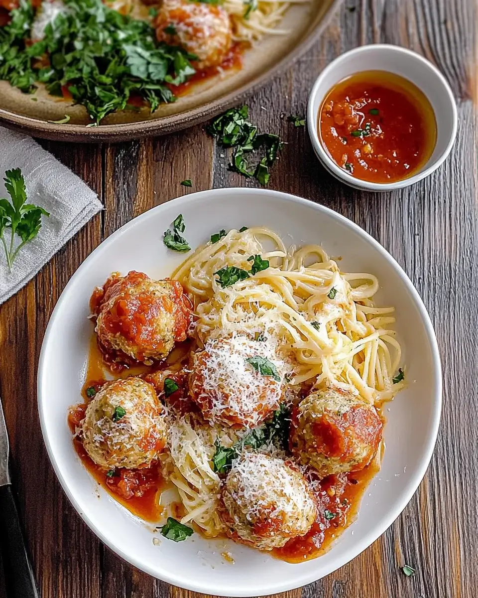 In a large mixing bowl, combine the ground chicken, breadcrumbs, Parmesan cheese, parsley, egg, garlic, salt, pepper, and Italian seasoning. Mix until well combined.