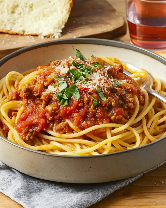Combine:Toss the cooked spaghetti with the meat sauce or serve the sauce on top of the noodles.