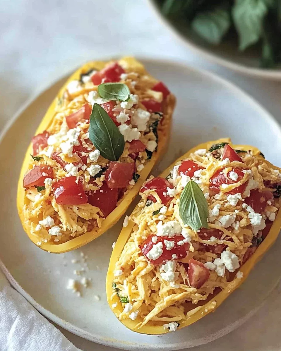 Prepare the spaghetti squash: Preheat the oven to 400°F (200°C). Slice the spaghetti squash in half lengthwise and remove the seeds. Drizzle the cut sides with 1 tablespoon of olive oil, season with salt and pepper, and place cut-side down on a baking sheet. Roast for 40-50 minutes until tender.