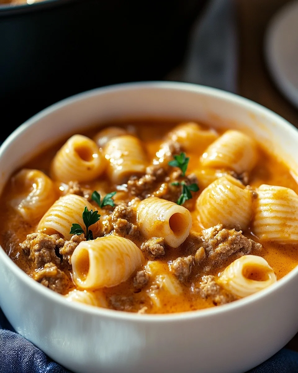 - Return cooked ground beef and pasta to the skillet, tossing to coat.