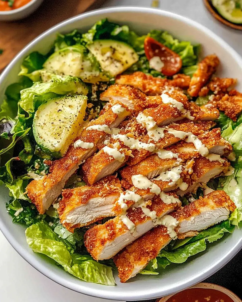 - Top with grilled chicken slices, Parmesan, and croutons.
