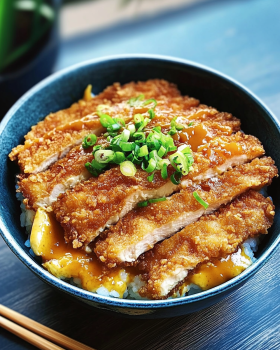 Assemble Bowls:Divide cooked rice into bowls. Top each bowl with shredded cabbage, cucumber slices, julienned carrots, and green onions. Place sliced katsu cutlets on top.