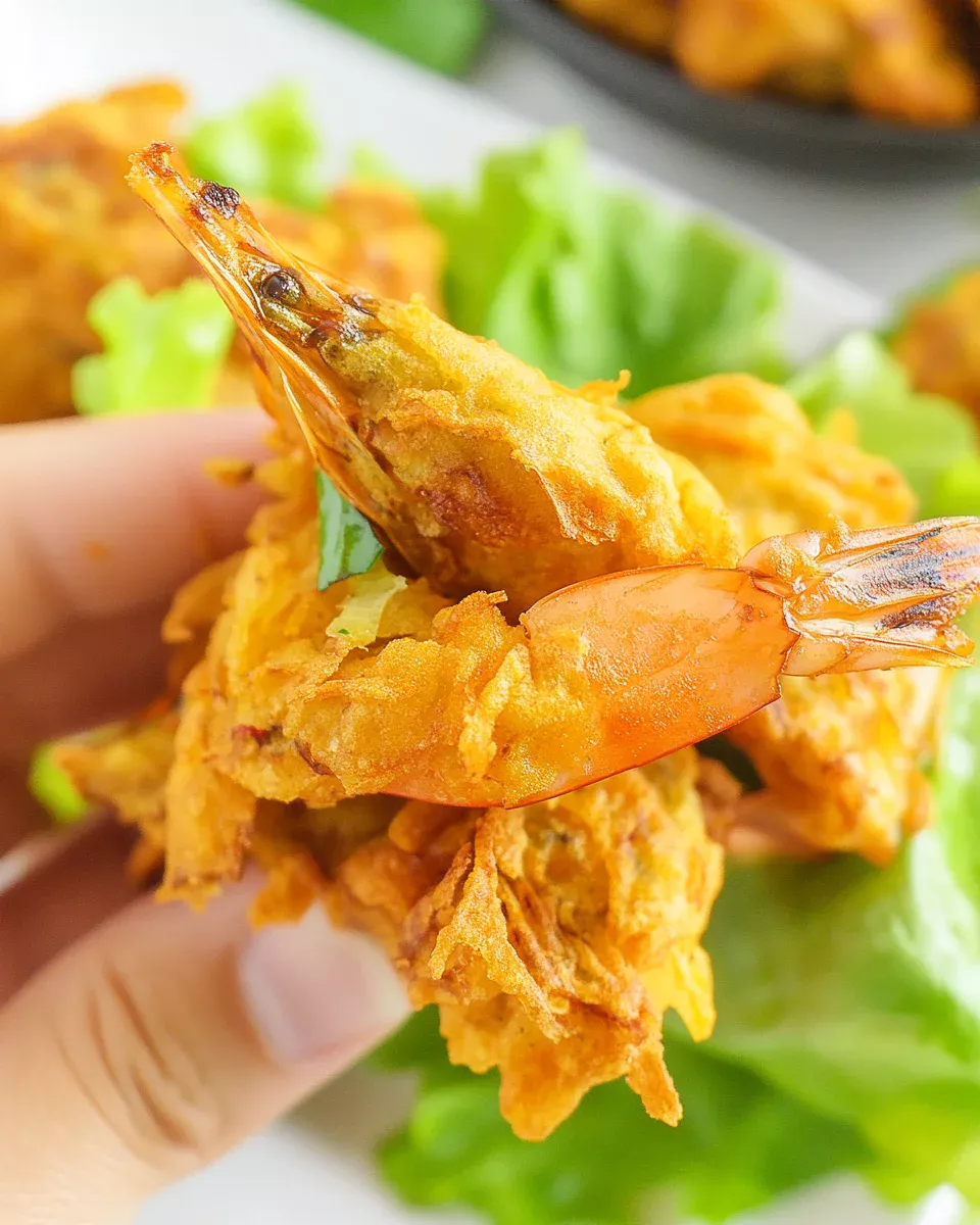Heat about 1/2 inch of vegetable oil in a large skillet over medium heat. Once the oil is hot, drop spoonfuls of the batter into the oil, flattening them slightly with the back of the spoon.