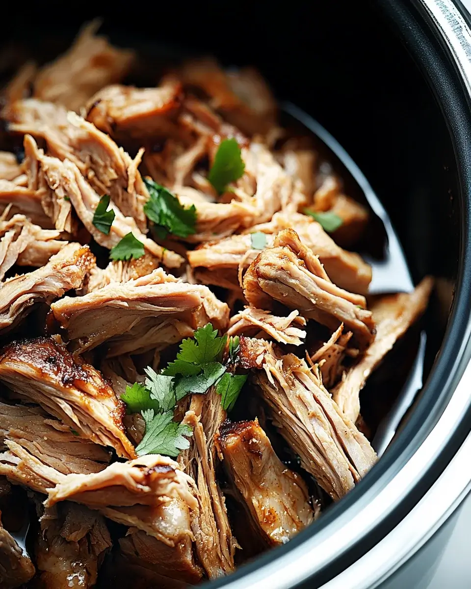 Cover and cook on low for 8 hours or high for 4 hours, until the pork is tender and easily shreds with a fork.