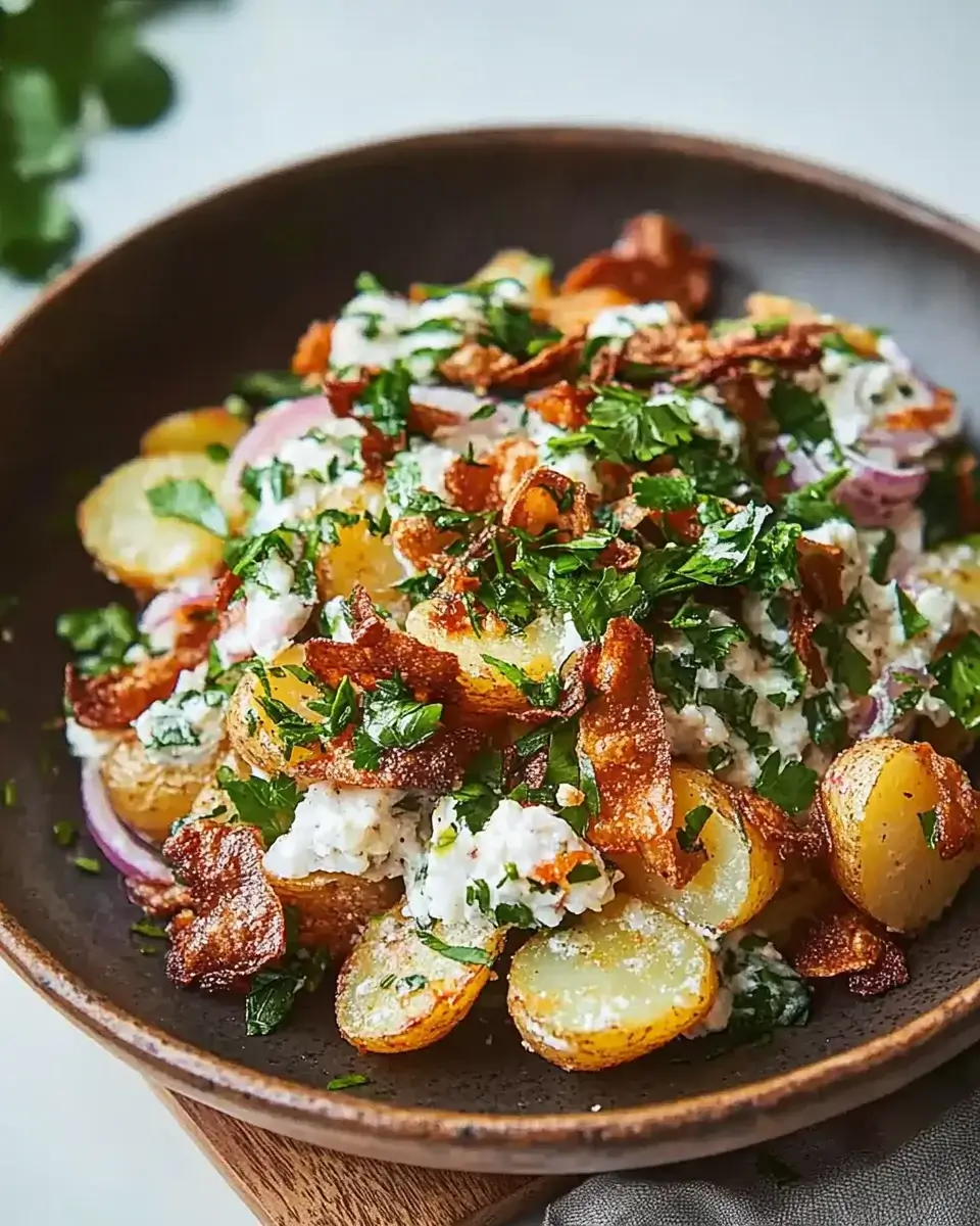 - Toss crispy potatoes with dressing. Serve warm or at room temperature.