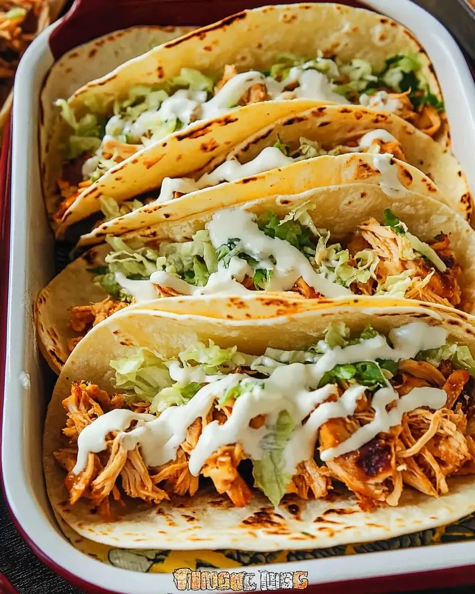 Assemble the tacos by placing a generous amount of the seasoned chicken on each tortilla.