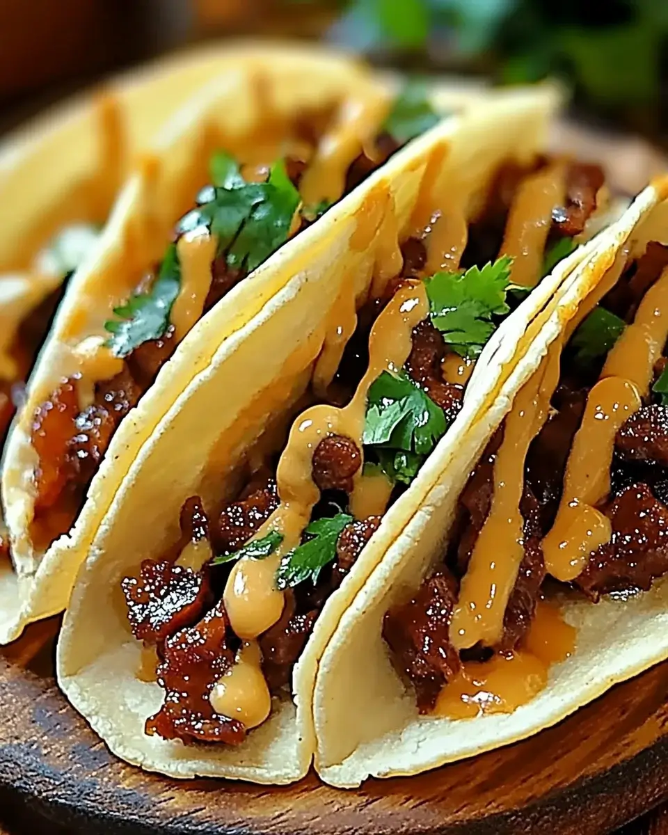 To assemble the tacos, spoon the beef mixture onto each tortilla. Top with shredded lettuce, diced tomatoes, and cheese. Add a dollop of sour cream if desired.