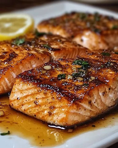 - During the last minute of cooking, brush the salmon generously with the buttery glaze.