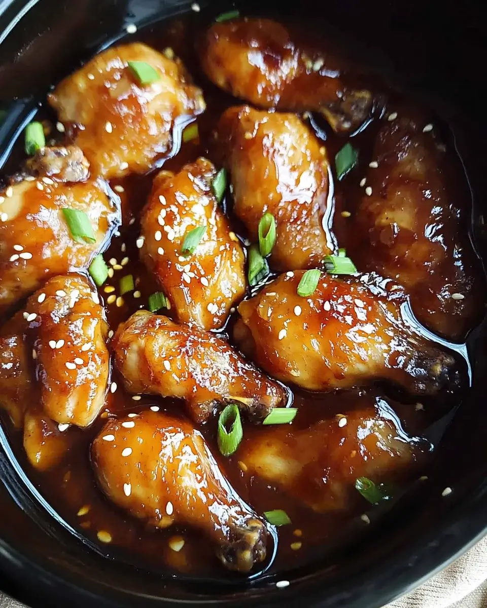 - Return chicken to crockpot, stir to coat, then serve with rice and garnish.