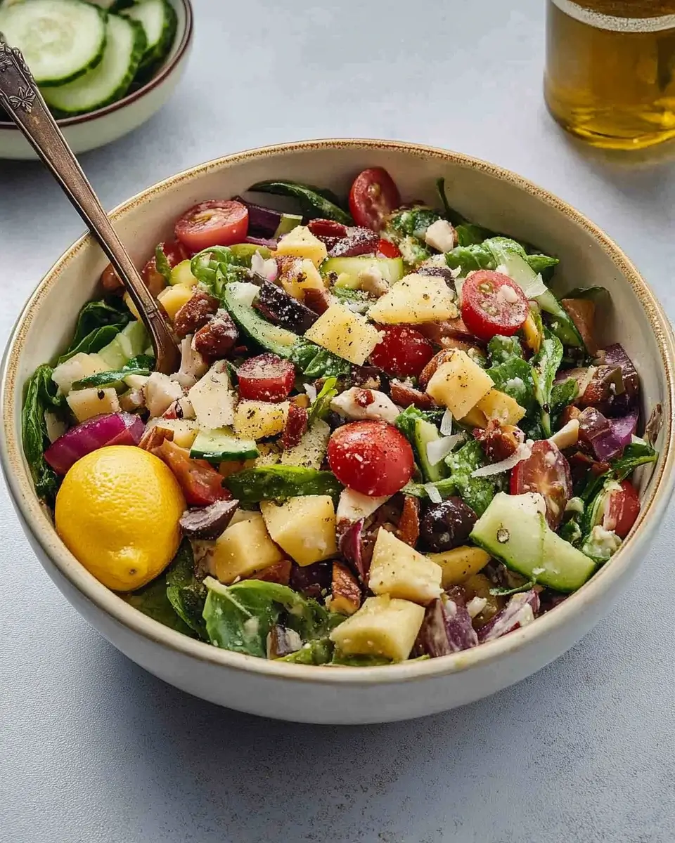 Drizzle the dressing over the salad and toss again to coat all the ingredients evenly.