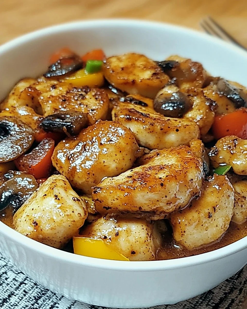 - Return the cooked chicken to the skillet. Stir to coat the chicken with the sauce and vegetables.