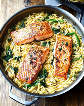Sear the Salmon: Season salmon with salt and pepper. Heat olive oil in a large skillet over medium heat. Sear salmon skin-side down for 4-5 minutes, flip, cook another 2-3 minutes until golden and cooked through. Remove and set aside.