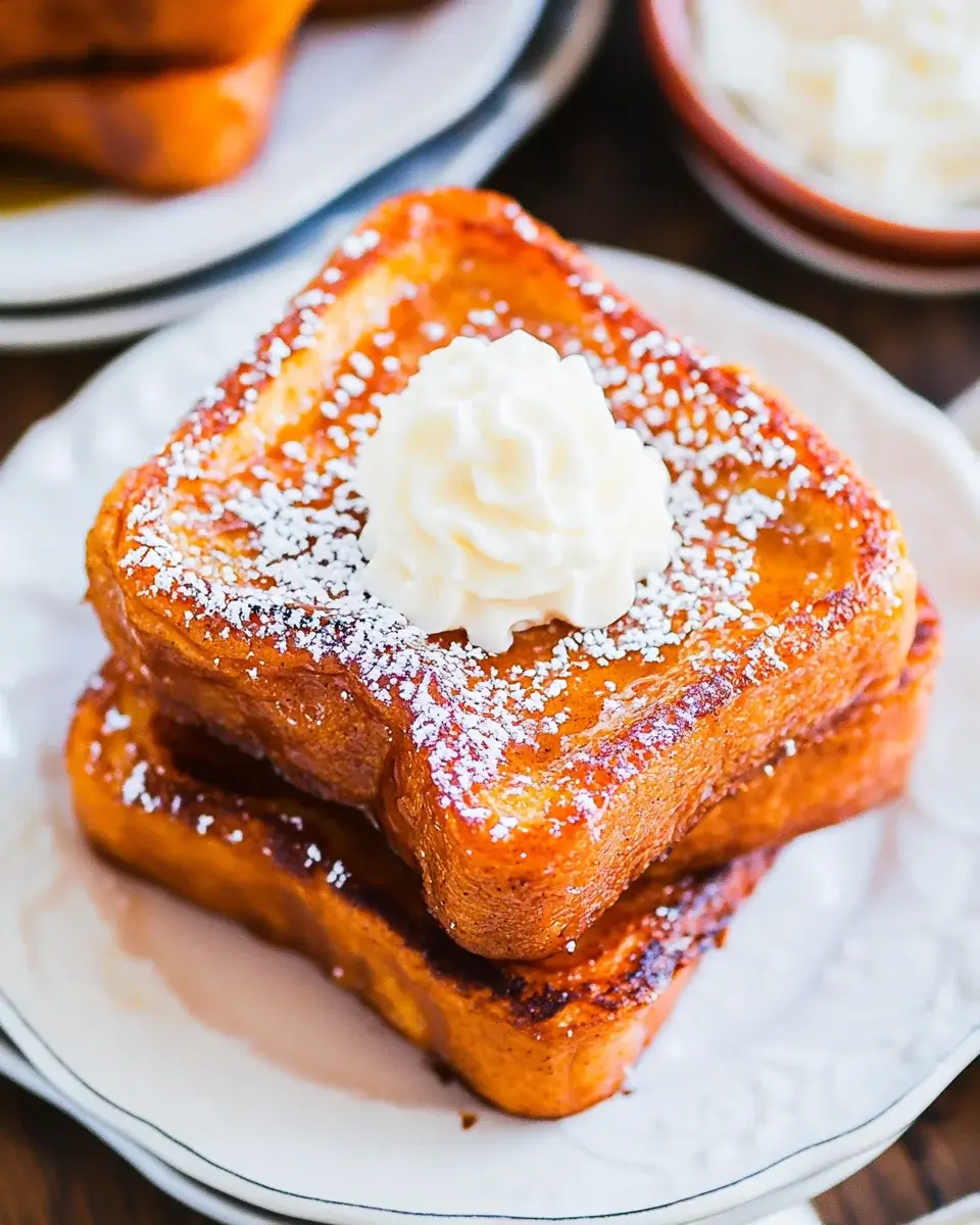 Dip each slice of bread into the pumpkin mixture, allowing it to soak for a few seconds on each side. Let any excess batter drip off.
