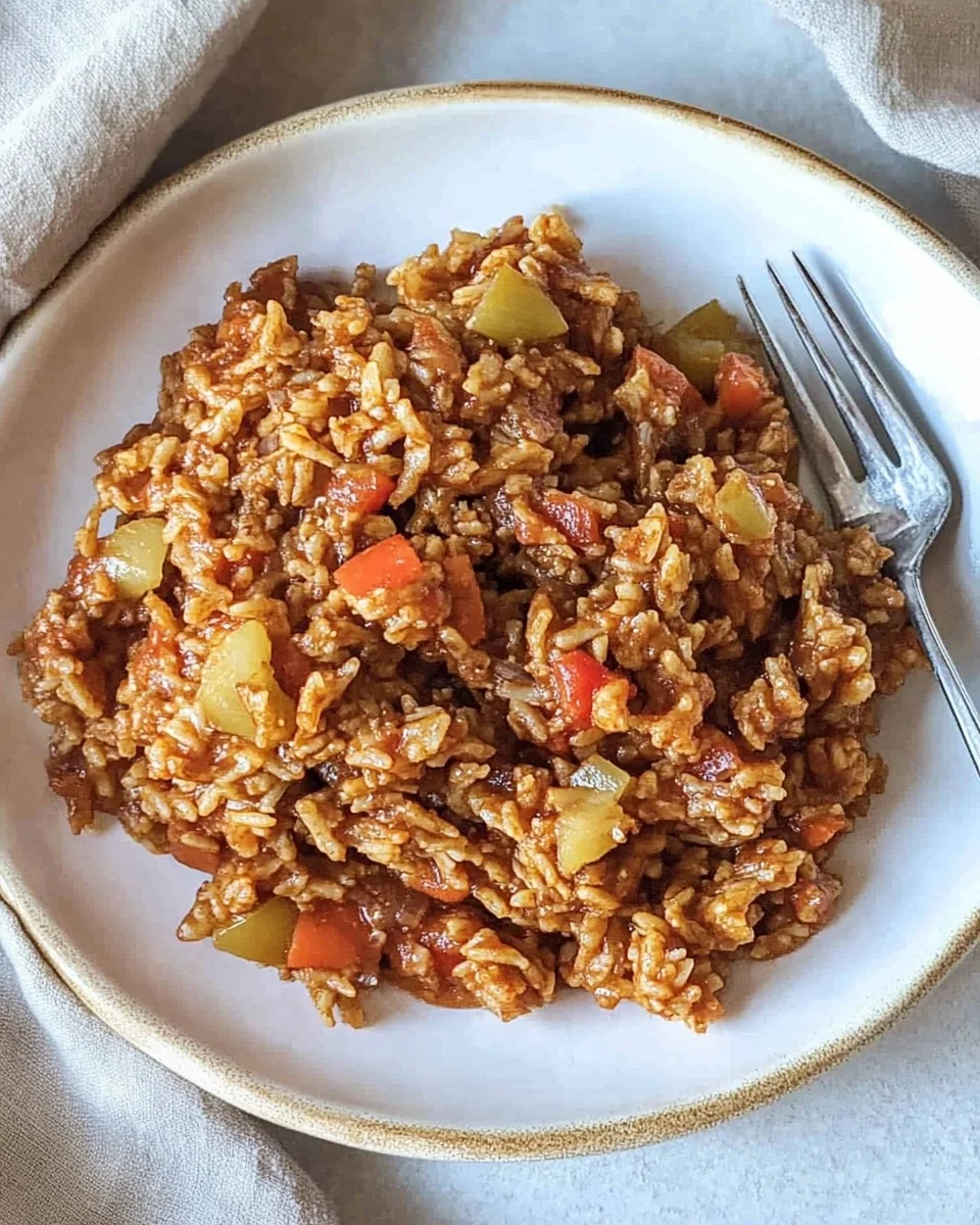Cook the Rice: Mix in the tomato paste, uncooked rice, beef broth, and fire-roasted diced tomatoes (with juices). Stir to combine, then bring to a boil. Reduce heat to low, cover, and let simmer for 20-25 minutes, stirring occasionally, until the rice is tender.