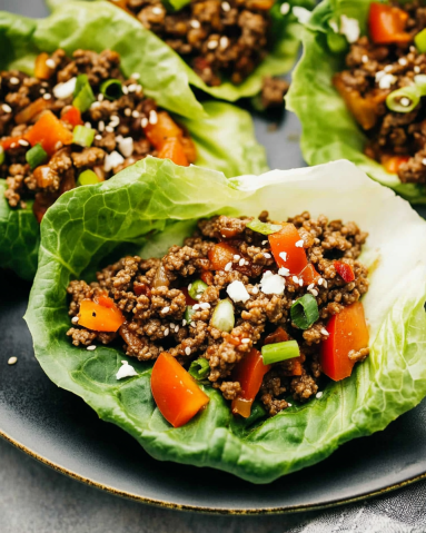 Spoon the beef mixture into lettuce leaves.