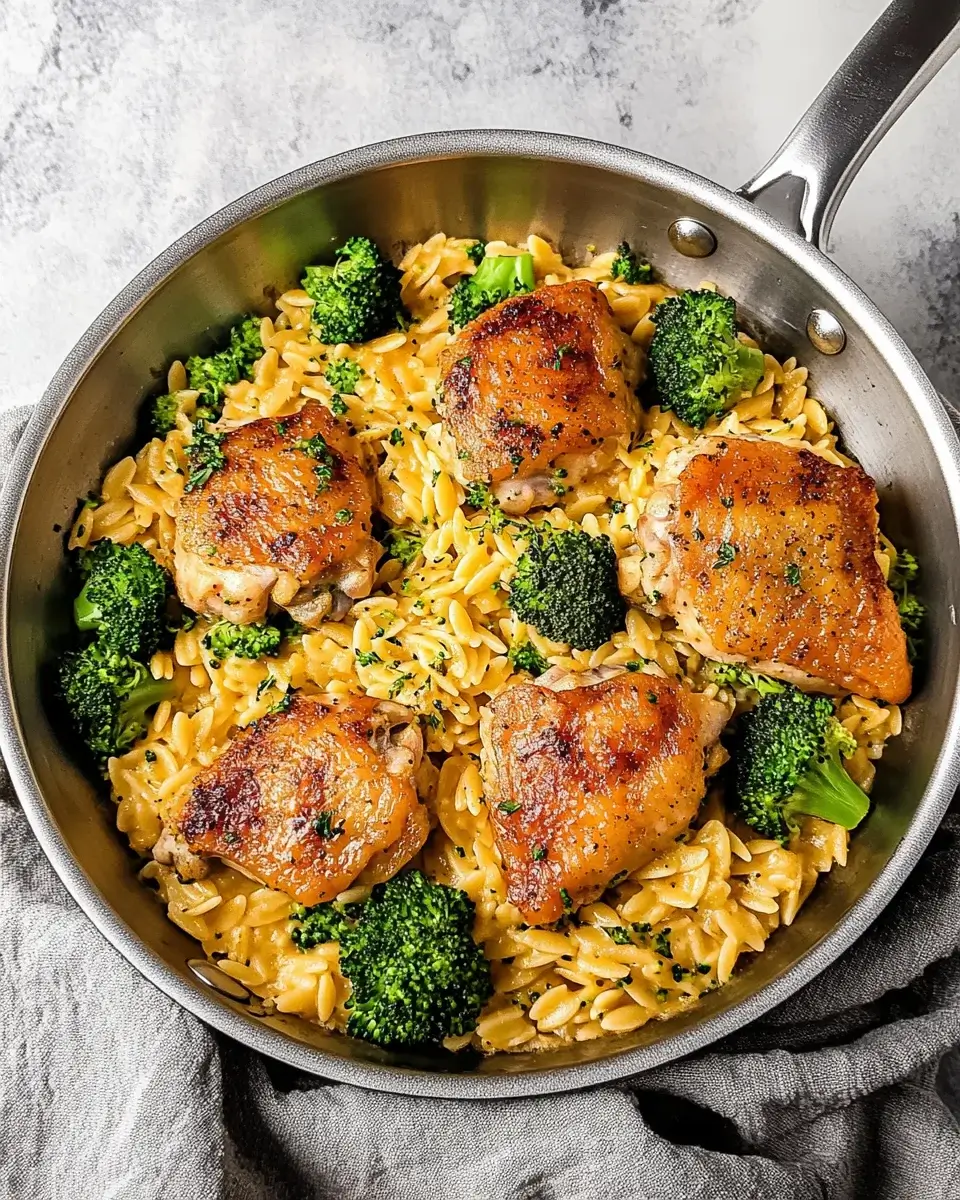 - In the same skillet, sauté garlic, then stir in orzo. Cook for 1 minute.