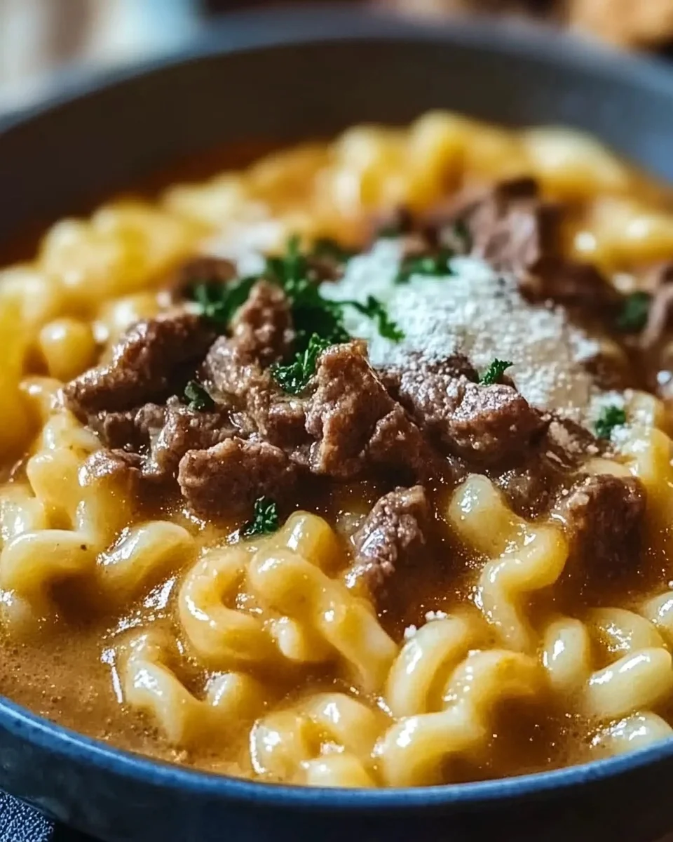 While the beef is simmering, cook the pasta according to package instructions until al dente.