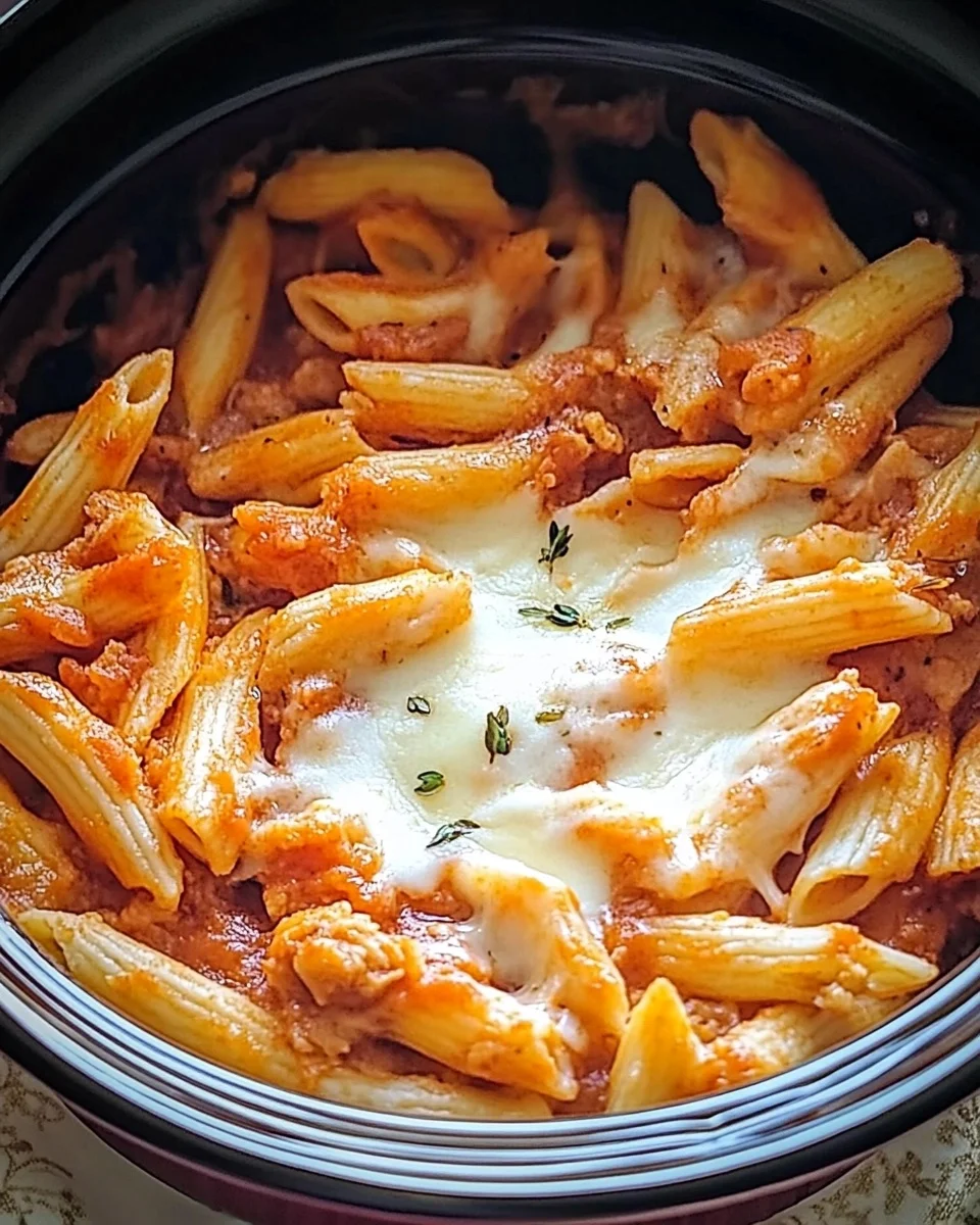 Add marinara sauce, uncooked penne pasta, and chicken broth. Stir to combine and bring to a boil.