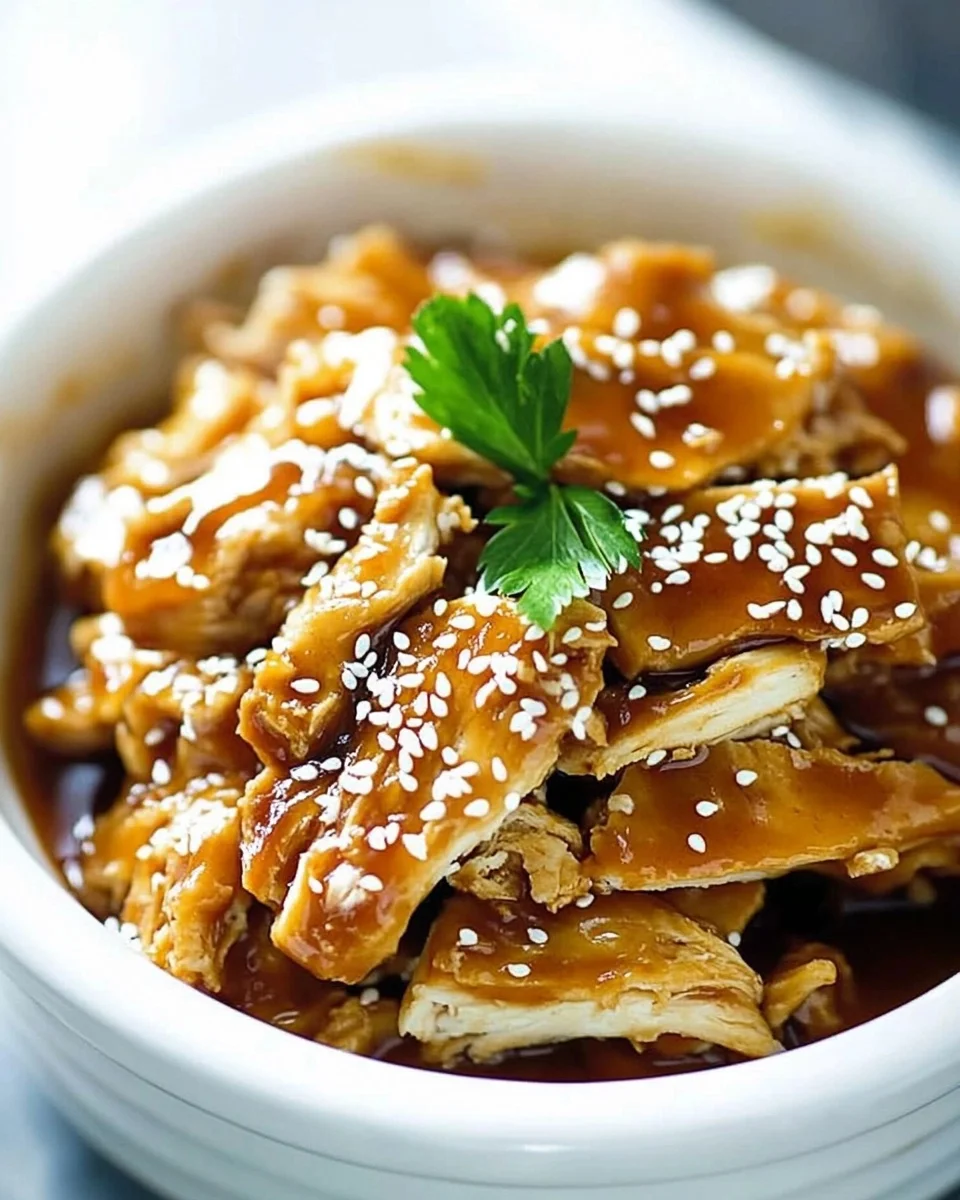 About 30 minutes before serving, remove the chicken from the slow cooker and set it aside.