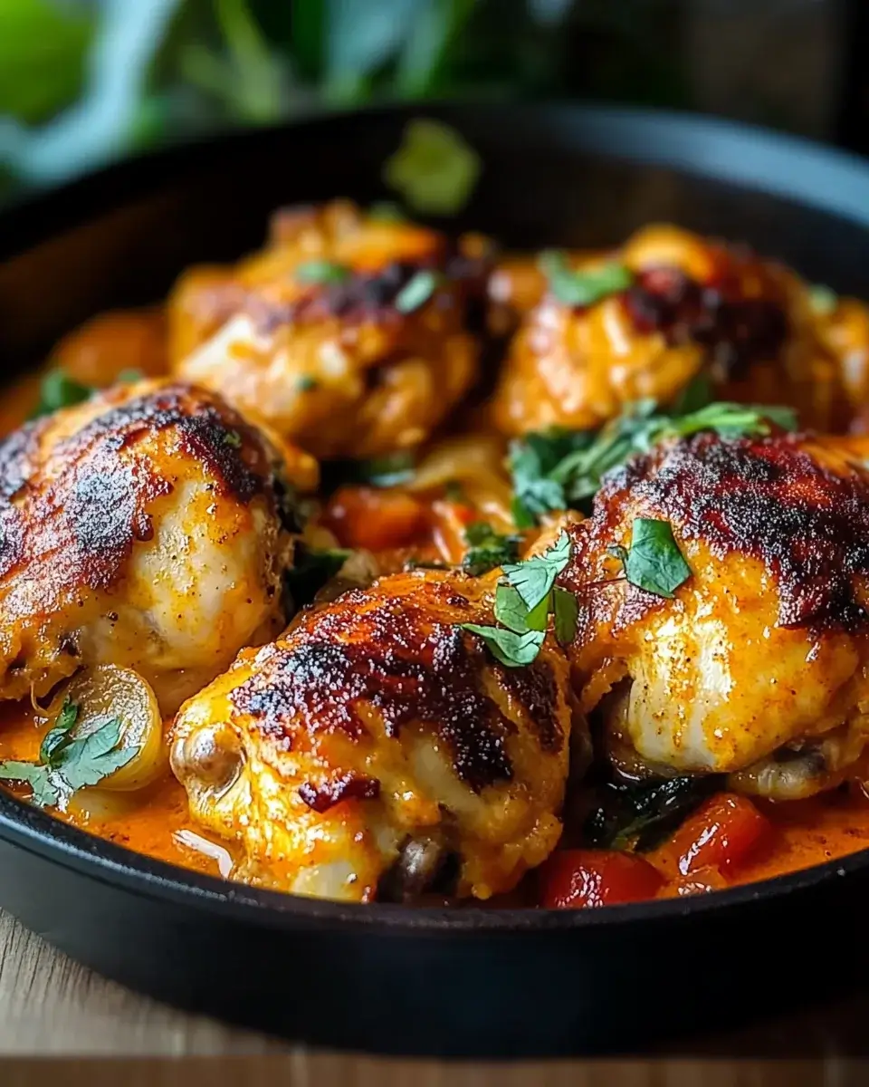 Increase the heat to medium-high and add the chicken thighs. Season with salt and pepper, cooking until browned on all sides, about 5-7 minutes.