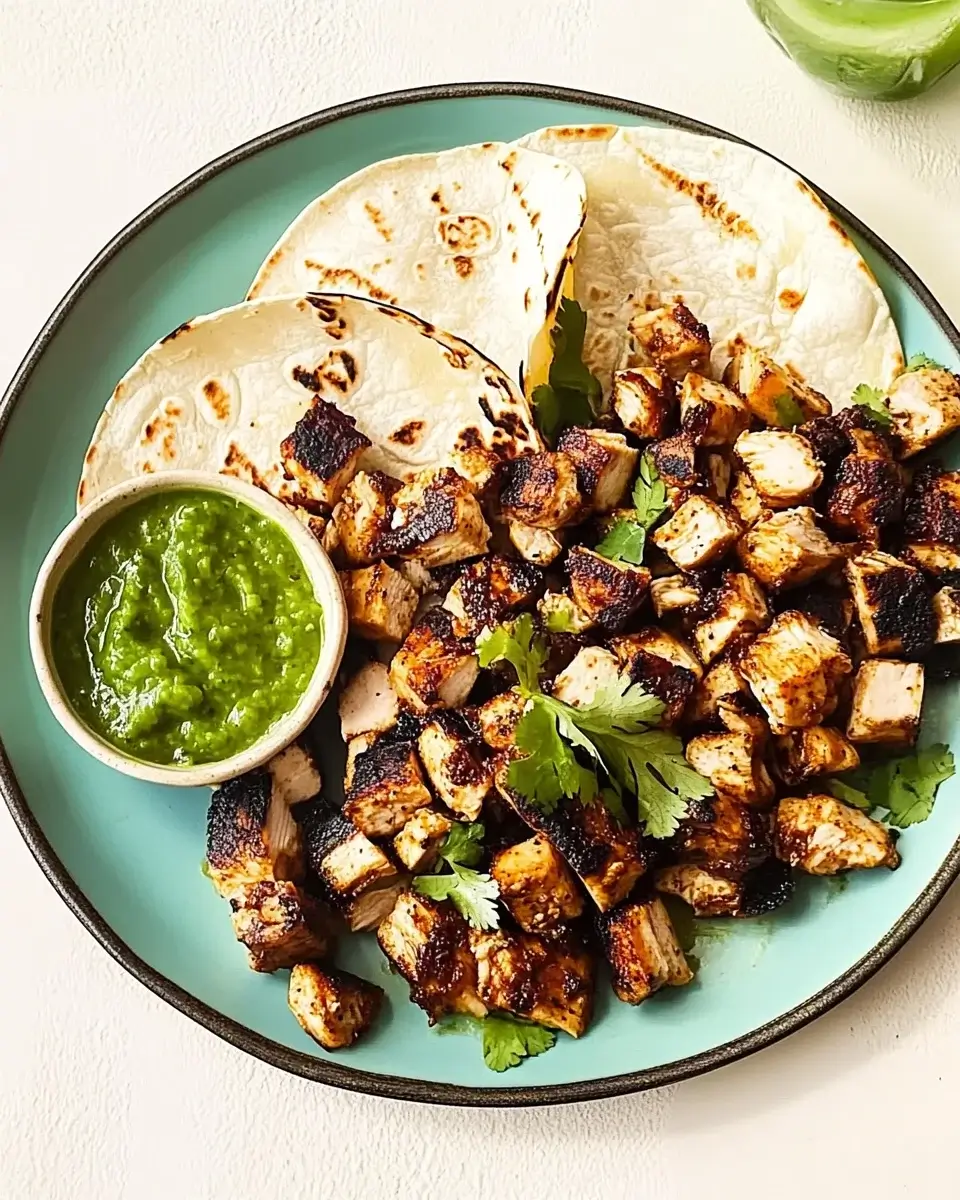 While the chicken is cooking, warm the tortillas in a separate skillet or microwave until soft and pliable.