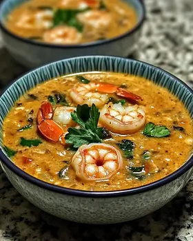 Add Shrimp:Once simmering, add shrimp to the pot. Cook until shrimp turn pink and opaque, about 4–5 minutes. Season with salt and pepper to taste.