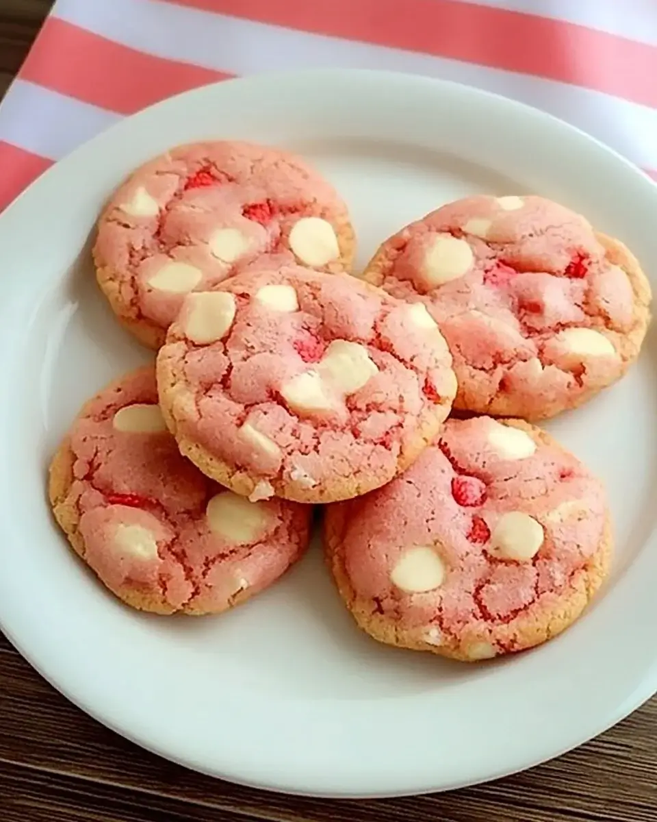In a large mixing bowl, combine the strawberry cake mix, softened butter, eggs, and vanilla extract. Mix until well combined and a dough forms.